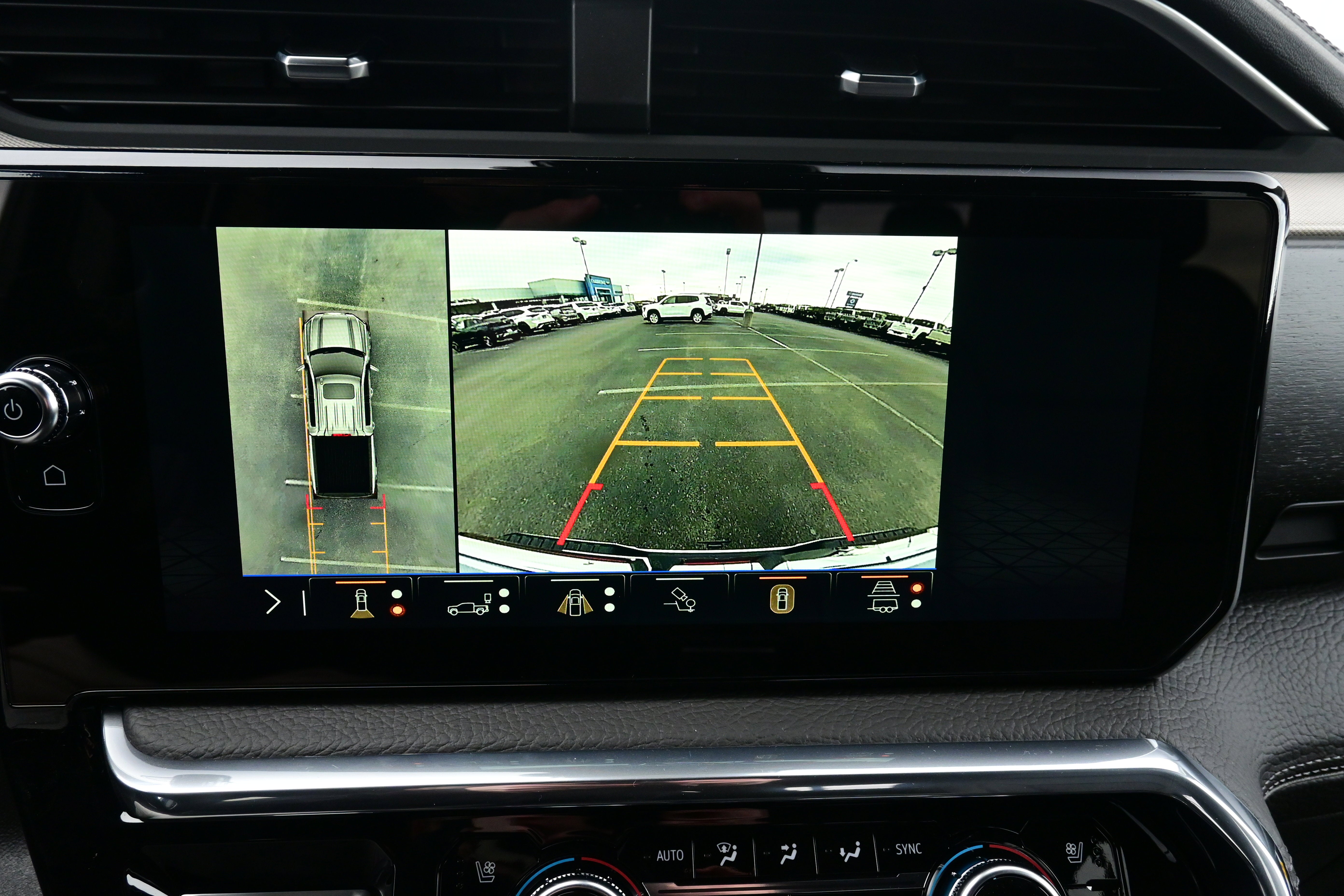 - Allows driver to see inside the cargo bed on the infotainment display to help with 5th wheel or gooseneck hitching and to check cargo