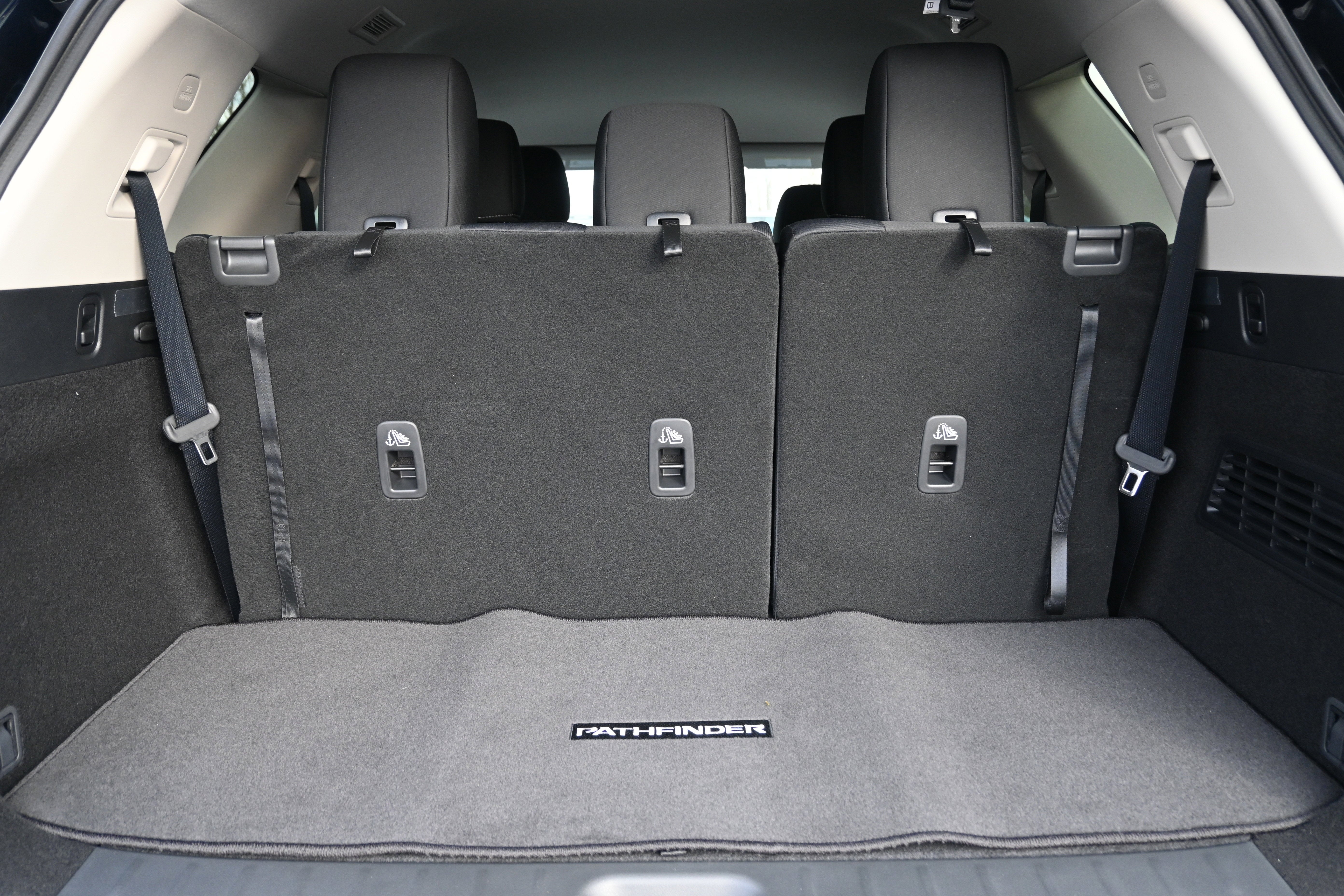 - Fixed 60-40 Bench Cloth 3rd Row Seat Front, Manual Recline, Manual Fold Into Floor, 3 Manual and Adjustable Head Restraints