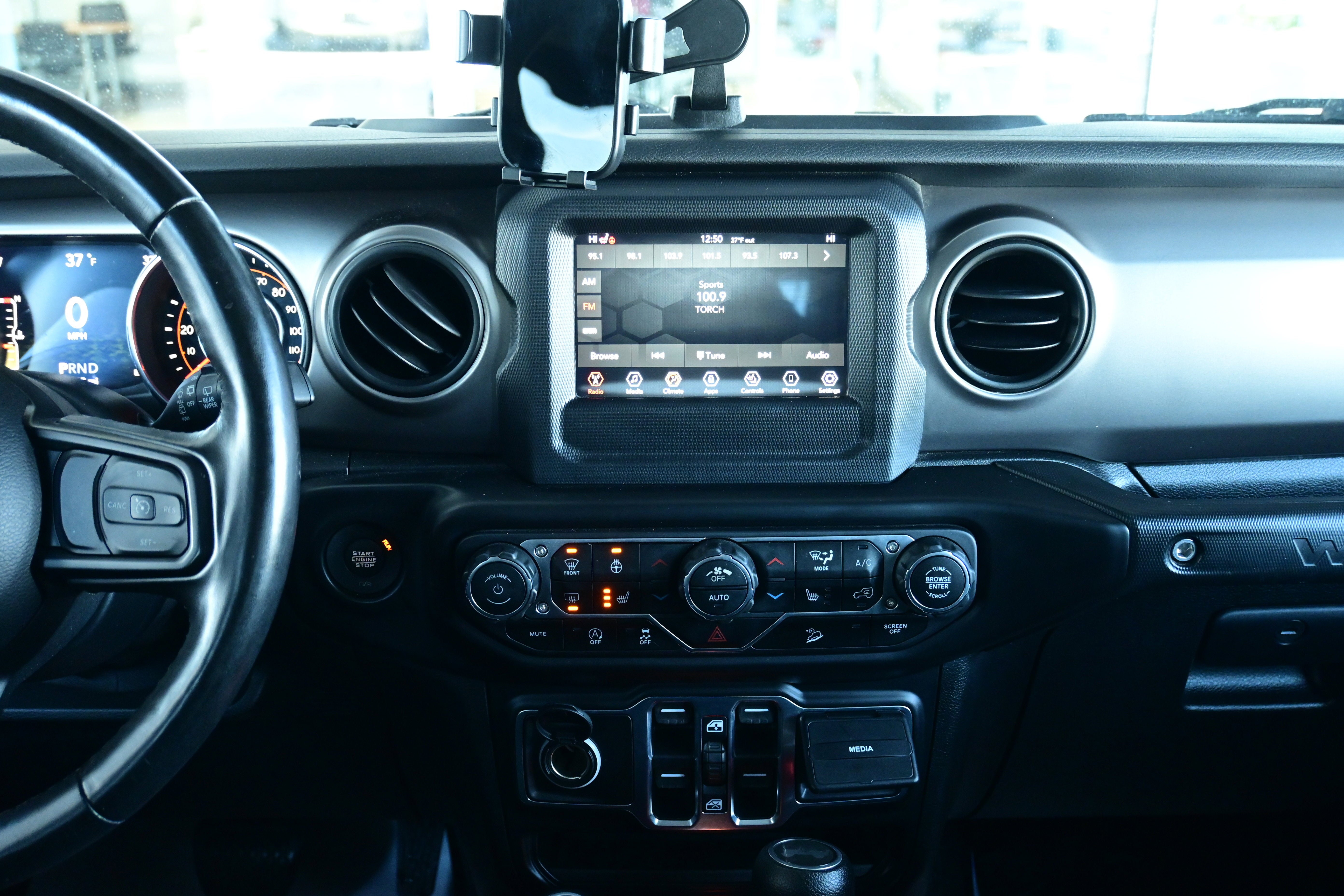 Cold Weather Group, Convenience Group, LED Headlamp & Fog Lamp Group (Front LED Fog Lamps), Quick Order Package 24W Willys (4-Wheel Drive Swing Gate Decal, Anti-Lock 4-Wheel Disc HD Brakes, Black Grille, Black Trail Rated Badge, Deep Tint Sunscreen Windows, Matte Black Jeep Badge, MOPAR All-Weather Floor Mats, Power Heated Mirrors, Remote Keyless Entry, Security Alarm, Speed Sensitive Power Locks, Willys, and Willys Hood Decal), Technology Group (7.0" Touchscreen Display, Integrated Center Stack Radio, Radio: Uconnect 4 w/7" Display, and SiriusXM Satellite Radio), 3.45 Rear Axle Ratio, 4-Wheel Disc Brakes, 8 Speakers, ABS brakes, Air Conditioning, AM/FM radio, Apple CarPlay (DISC), Aux Battery, Black 3-Piece Hard Top, Brake assist, Cloth Low-Back Bucket Seats, Compass, Delay-off headlights, Driver door bin, Driver vanity mirror, Dual front impact airbags, Dual front side impact airbags, Electronic Stability Control, Front anti-roll bar, Front Bucket Seats, Front Center Armrest w/Storage, Front fog lights, Front reading lights, Integrated roll-over protection, Integrated Voice Command w/Bluetooth®, Low tire pressure warning, No Soft Top, Non-Lock Fuel Cap w/o Discriminator, Normal Duty Suspension, Occupant sensing airbag, Outside temperature display, ParkView Rear Back-Up Camera, Passenger door bin, Passenger vanity mirror, Power steering, Radio data system, Radio: Uconnect 3 w/5" Display, Rear anti-roll bar, Rear reading lights, Rear Window Defroster, Speed control, Split folding rear seat, Steering wheel mounted audio controls, Stop-Start Dual Battery System, Tachometer, Telescoping steering wheel, Tilt steering wheel, Traction control, Trip computer, Variably intermittent wipers, and Wheels: 17" x 7.5" Black Steel Styled.