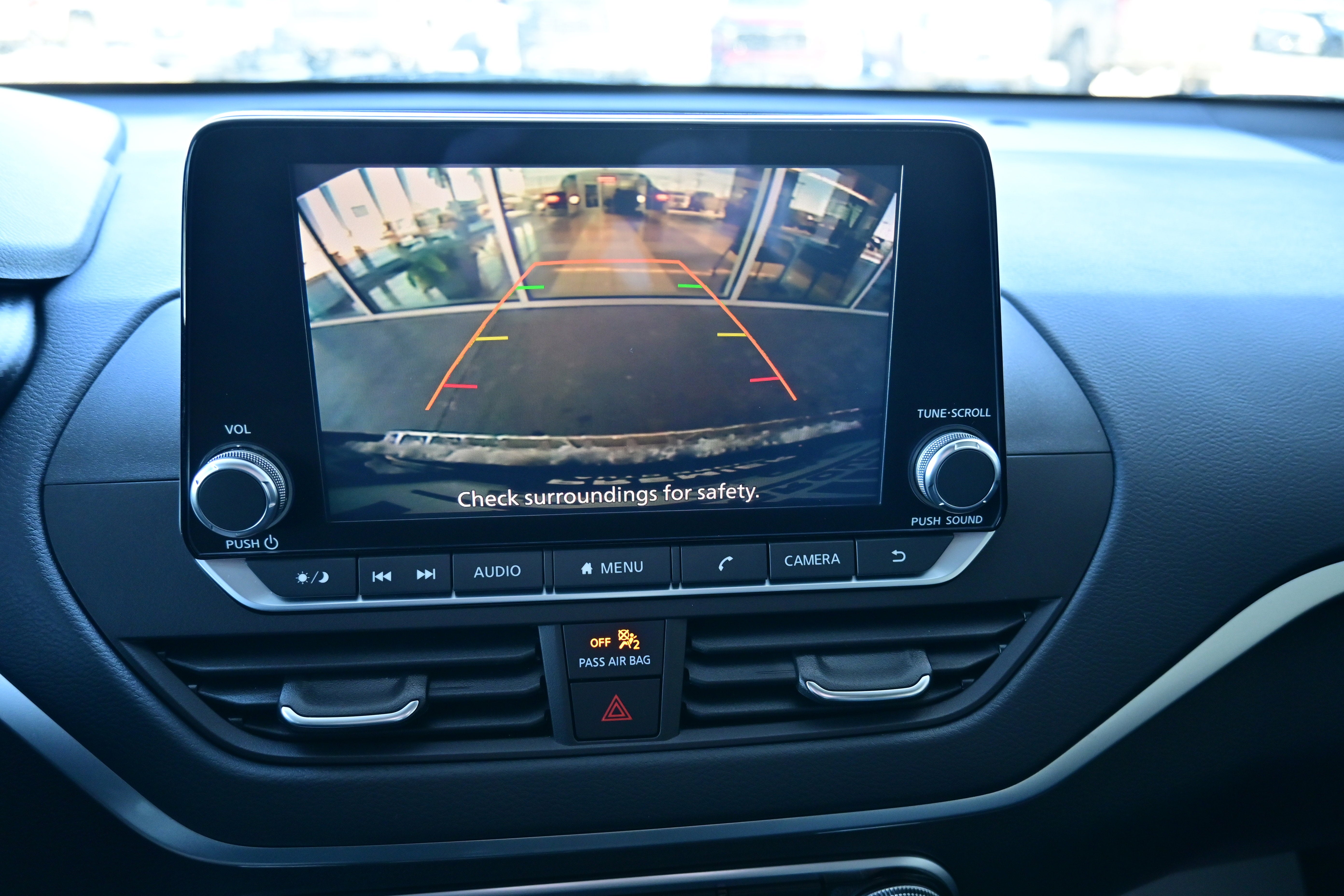 CVT with Xtronic, 17" Machined Alloy Wheels, 4-Wheel Disc Brakes, 6 Speakers, ABS brakes, Air Conditioning, Alloy wheels, AM/FM radio: SiriusXM, Auto High-beam Headlights, Blind Spot Warning, Body-Colored Splash Guards, Brake assist, Bumpers: body-color, Chrome Bumper Protector, Cloth Seat Trim, Delay-off headlights, Driver door bin, Driver vanity mirror, Dual front impact airbags, Dual front side impact airbags, Electronic Stability Control, Floor Mats/Trunk Mat/Hideaway Net, Four wheel independent suspension, Front anti-roll bar, Front Bucket Seats, Front Center Armrest, Front reading lights, Fully automatic headlights, Illuminated entry, Knee airbag, Low tire pressure warning, NissanConnect featuring Apple CarPlay and Android Auto, Occupant sensing airbag, Outside temperature display, Overhead airbag, Overhead console, Panic alarm, Passenger door bin, Passenger vanity mirror, Power door mirrors, Power driver seat, Power steering, Power windows, Radio data system, Radio: AM/FM Audio System, Rear anti-roll bar, Rear Parking Sensors, Rear reading lights, Rear seat center armrest, Rear side impact airbag, Rear window defroster, Remote keyless entry, Security system, Speed control, Speed-sensing steering, Speed-Sensitive Wipers, Split folding rear seat, Sport steering wheel, Steering wheel mounted audio controls, Tachometer, Telescoping steering wheel, Tilt steering wheel, Traction control, Trip computer, Trunk Organizer Tray, and Variably intermittent wipers.