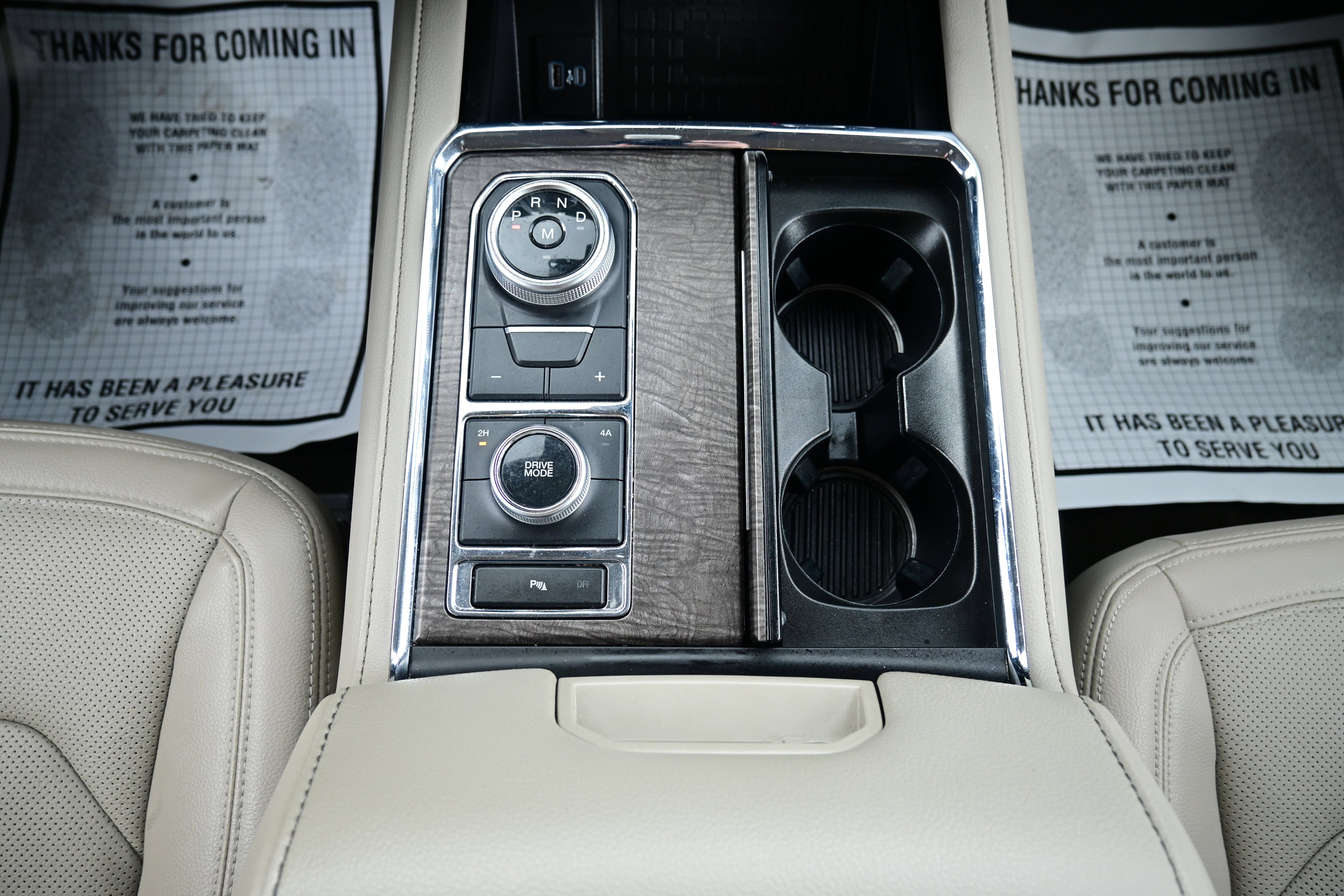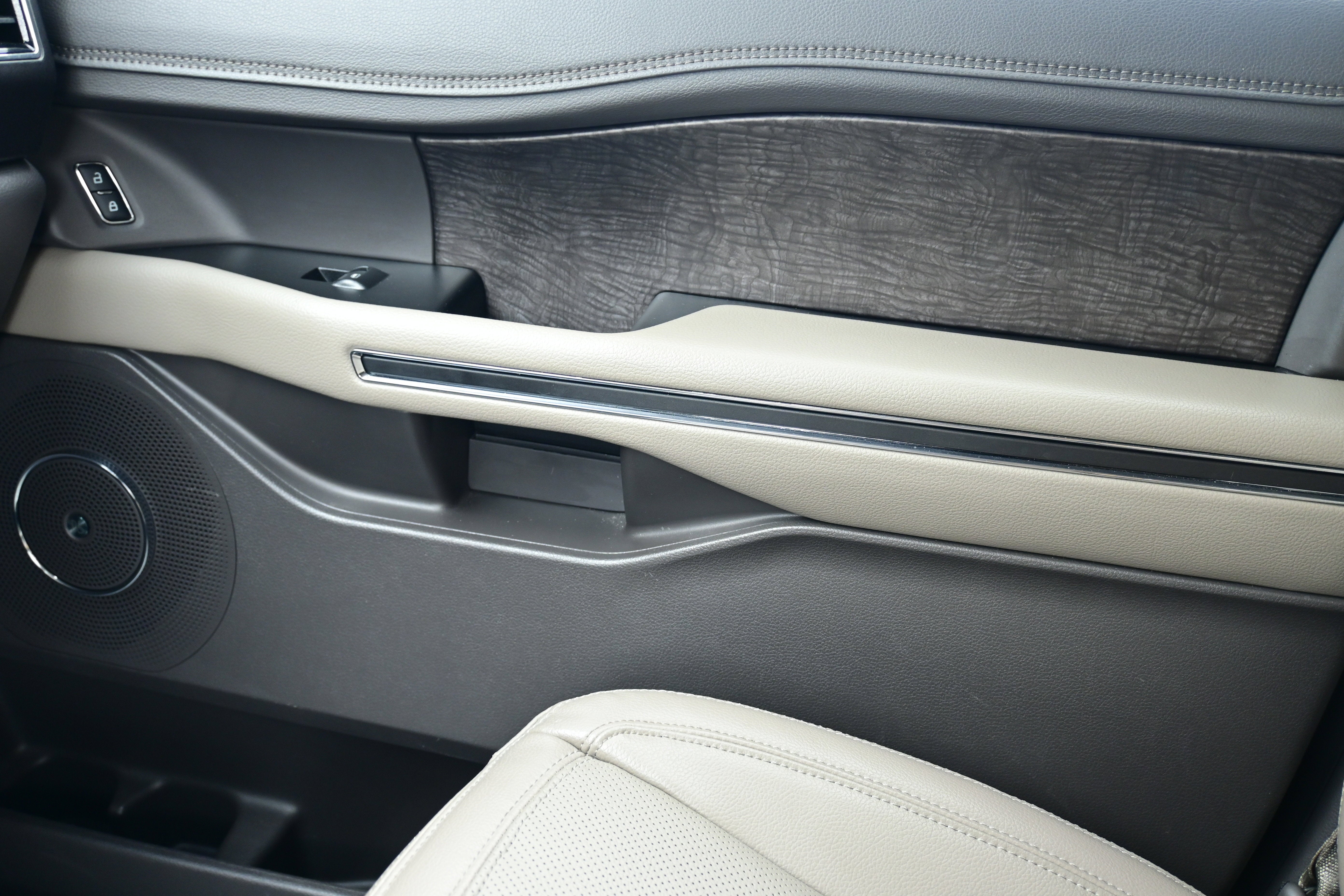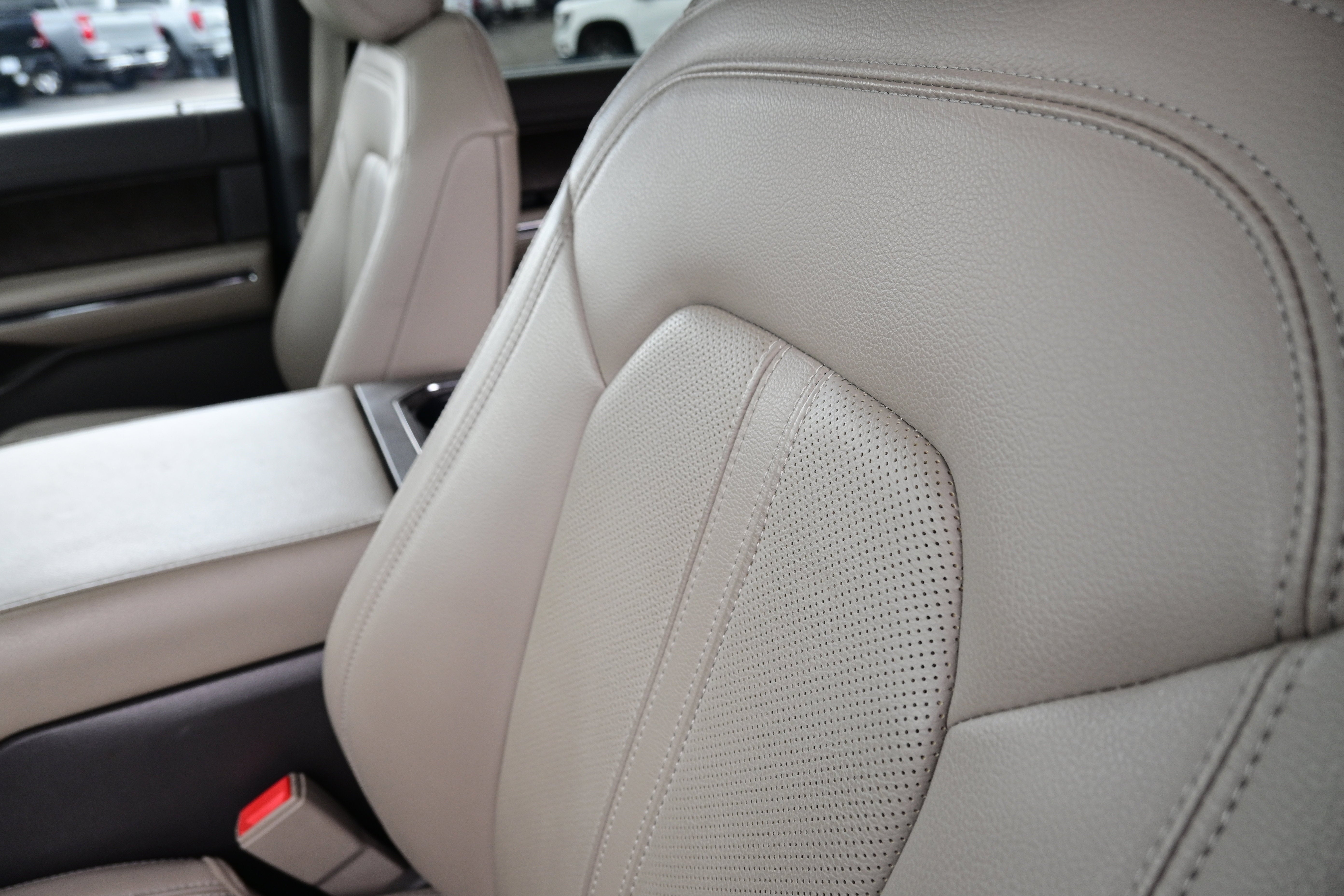 Equipment Group 300A Standard Package, 4WD, 12 Speakers, 3.31 Axle Ratio, 3rd row seats: split-bench, 4-Wheel Disc Brakes, ABS brakes, Adjustable pedals, Air Conditioning, AM/FM radio: SiriusXM, Auto High-beam Headlights, Auto-dimming door mirrors, Auto-dimming Rear-View mirror, Automatic temperature control, Brake assist, Bumpers: body-color, Compass, Delay-off headlights, Driver door bin, Driver vanity mirror, Dual front impact airbags, Dual front side impact airbags, Electronic Stability Control, Emergency communication system: SYNC 3 911 Assist, Exterior Parking Camera Rear, Four wheel independent suspension, Front anti-roll bar, Front Bucket Seats, Front Center Armrest, Front dual zone A/C, Front fog lights, Front reading lights, Fully automatic headlights, Garage door transmitter, Heated & Ventilated Leather Front Captain's Chairs, Heated door mirrors, Heated front seats, Heated rear seats, Heated steering wheel, Illuminated entry, Leather steering wheel, LED Headlamps & Fog Lamps, Low tire pressure warning, Memory seat, Navigation System, Occupant sensing airbag, Outside temperature display, Overhead airbag, Overhead console, Panic alarm, Passenger door bin, Passenger vanity mirror, Pedal memory, Power door mirrors, Power driver seat, Power Liftgate, Power passenger seat, Power steering, Power windows, Radio data system, Radio: B&O Sound System by Bang & Olufsen, Rain sensing wipers, Rear air conditioning, Rear anti-roll bar, Rear audio controls, Rear reading lights, Rear window defroster, Rear window wiper, Reclining 3rd row seat, Remote keyless entry, Roof rack: rails only, Security system, SiriusXM Satellite Radio, Speed control, Speed-sensing steering, Speed-Sensitive Wipers, Split folding rear seat, Steering wheel memory, Steering wheel mounted audio controls, SYNC 3 Communications & Entertainment System, Tachometer, Telescoping steering wheel, Tilt steering wheel, Traction control, Trip computer, Turn signal indicator mirrors, Variably intermittent wipers, Ventilated front seats, Voltmeter, and Wheels: 20" 6-Spoke Gloss Black-Painted.
