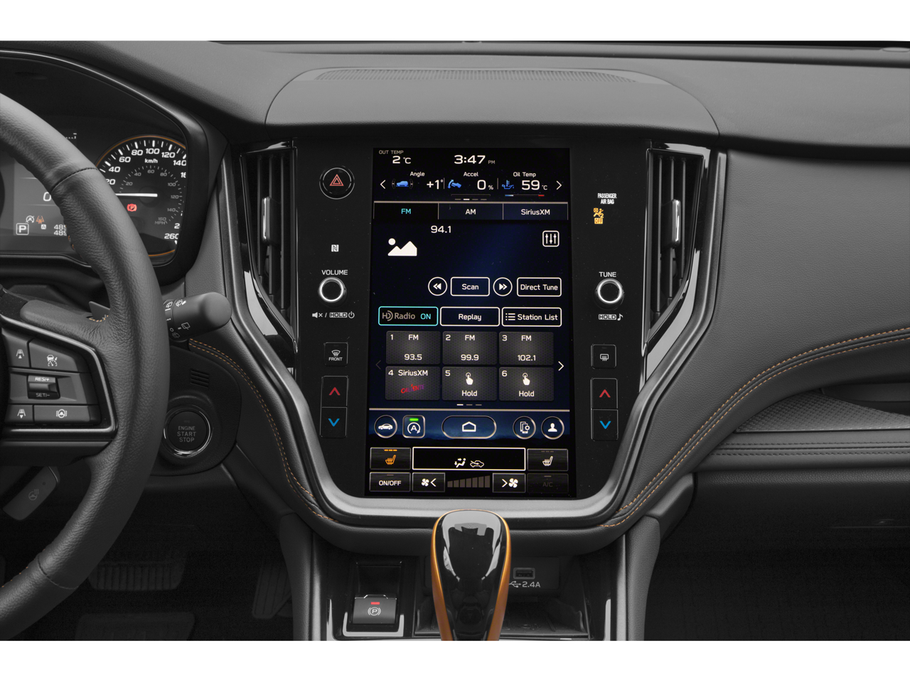 - Heated Front Bucket Seats -inc: height and tilt adjustable head restraints w/embossed Subaru Wilderness logo, whiplash reducing front seats, 10-way power driver's seat w/2-way power lumbar, 8-way power front passenger seat and divided seatback pocket