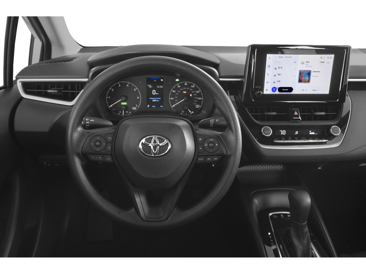 1.8L DOHC 16V VVT, 4-Wheel Disc Brakes, 6 Speakers, ABS brakes, Air Conditioning, AM/FM radio: SiriusXM, Auto High-beam Headlights, Automatic temperature control, Brake assist, Bumpers: body-color, Delay-off headlights, Driver door bin, Driver vanity mirror, Dual front impact airbags, Dual front side impact airbags, Electronic Stability Control, Emergency communication system: Safety Connect (up to 10-year trial subscription), Exterior Parking Camera Rear, Four wheel independent suspension, Front anti-roll bar, Front Bucket Seats, Front Center Armrest, Front reading lights, Fully automatic headlights, Illuminated entry, Knee airbag, Low tire pressure warning, Occupant sensing airbag, Outside temperature display, Overhead airbag, Panic alarm, Passenger door bin, Passenger vanity mirror, Power door mirrors, Power steering, Power windows, Premium Fabric Seat Trim, Radio data system, Radio: 8" Toyota Audio Multimedia, Rear anti-roll bar, Rear seat center armrest, Rear side impact airbag, Rear window defroster, Remote keyless entry, Speed control, Split folding rear seat, Steering wheel mounted audio controls, Tachometer, Telescoping steering wheel, Tilt steering wheel, Traction control, Trip computer, Variably intermittent wipers, and Wheels: 16" Wide Vent Steel.